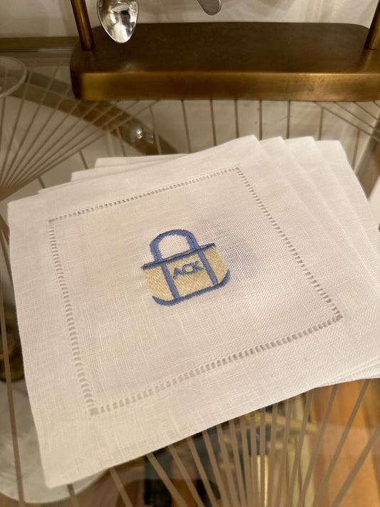 Custom Boat Bag Embroidered Cocktail Napkin Set