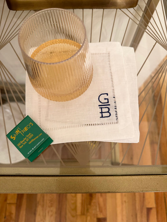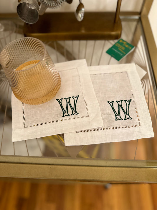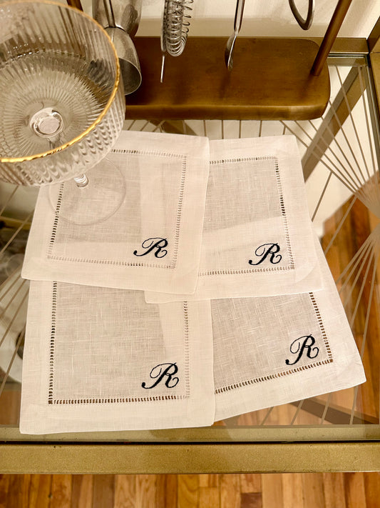 Custom Single Letter Monogram Embroidered Cocktail Napkin Set