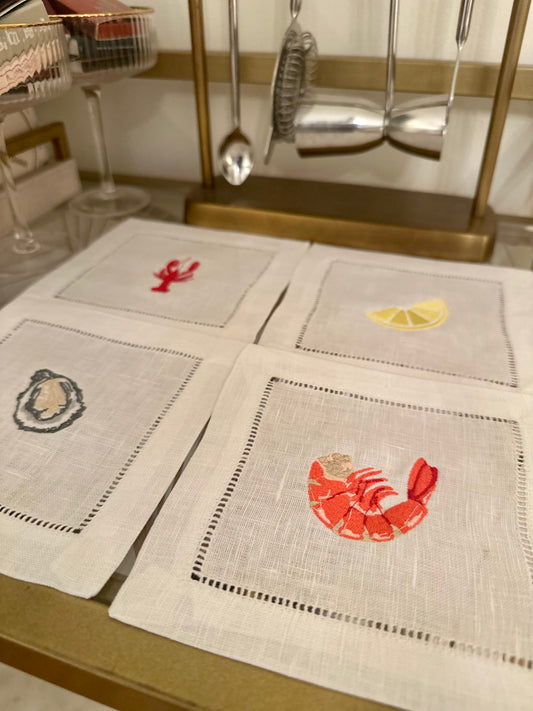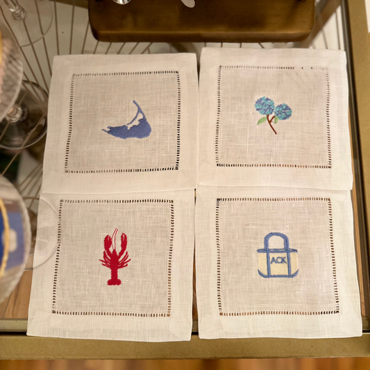 Meet Me in Montauk Embroidered Cocktail Napkin Set