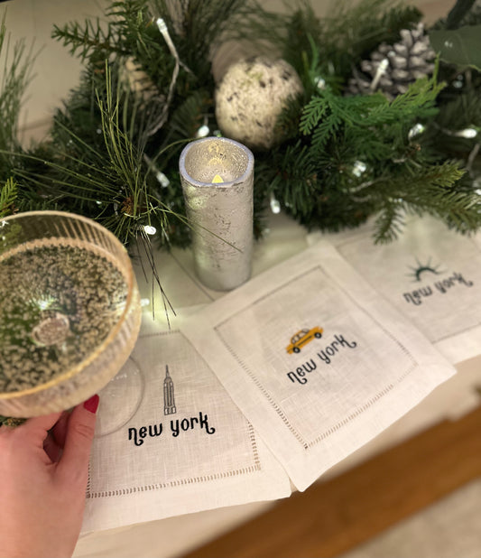 • Welcome to New York Embroidered Cocktail Napkin Set