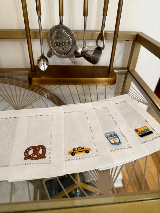 • Retro NYC Icon Embroidered Cocktail Napkin Set